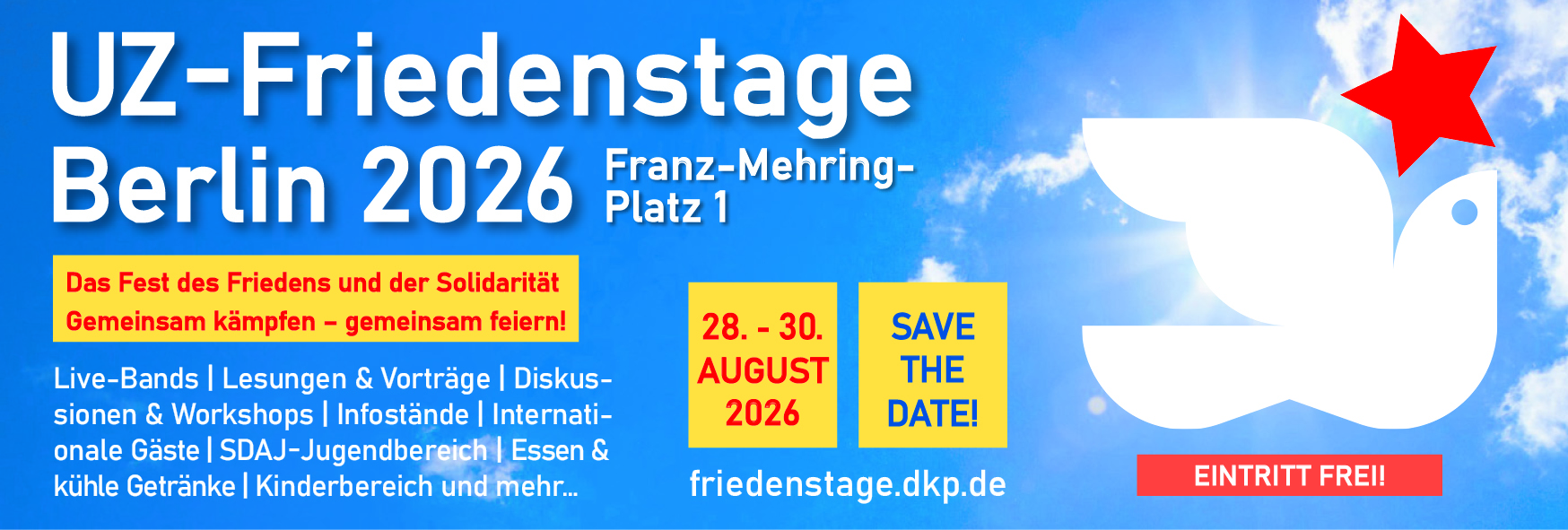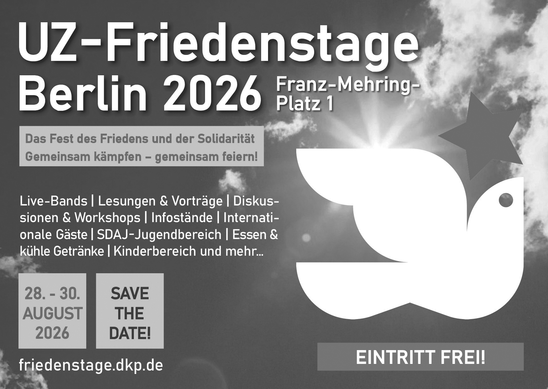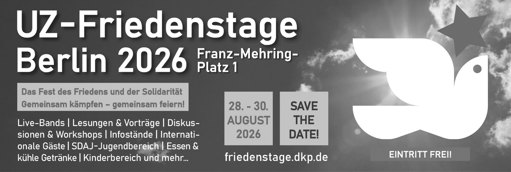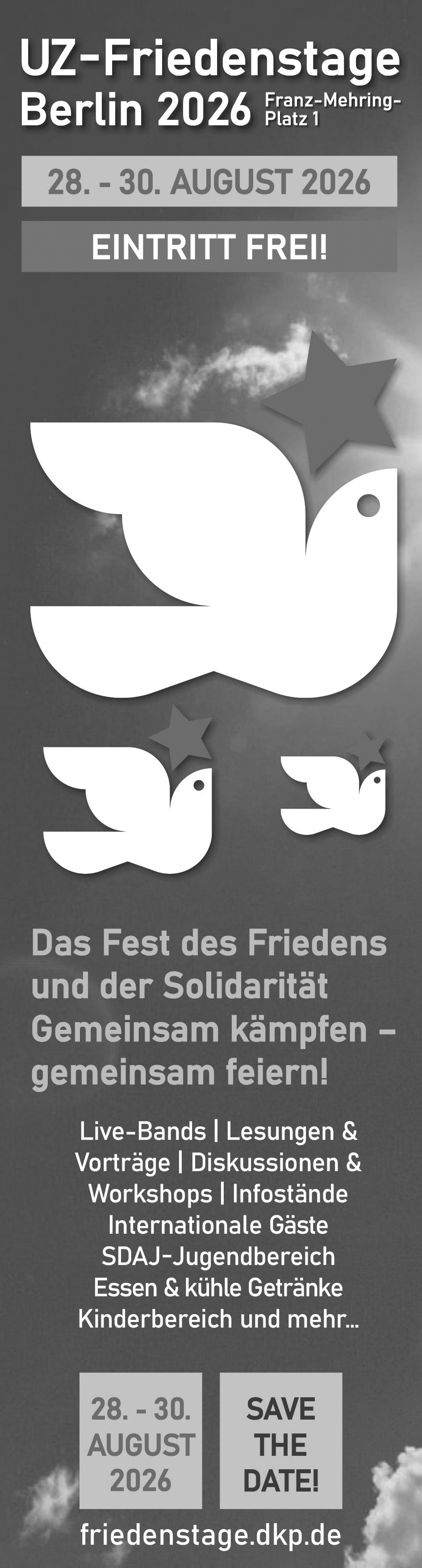 An dieser Stelle sind diverse Anzeigenvorlagen für die Friedenstage 2026 zum Downloaden.